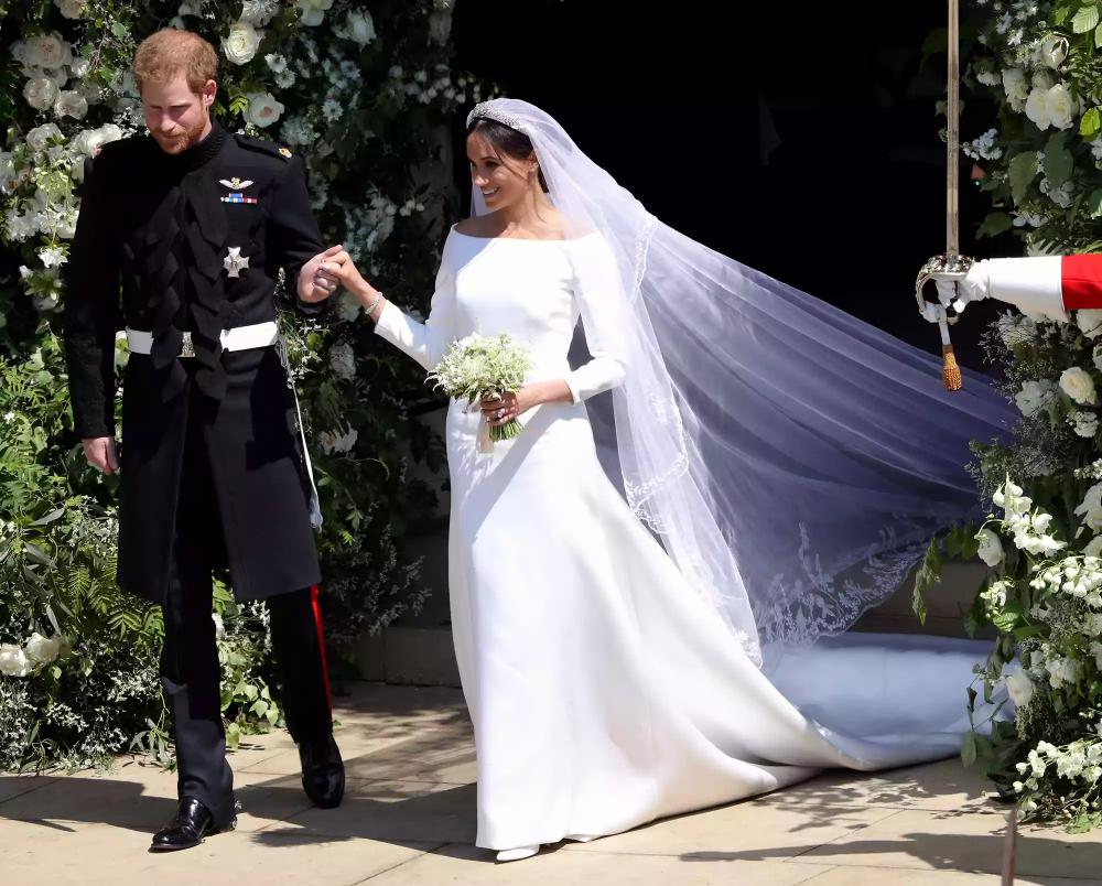 人们或许曾预期梅根 · 马克尔的婚纱礼服——这件过去十年间最受欢迎的婚纱之一——会极尽华丽,但由克莱尔 · 怀特 · 凯勒设计的这款纪梵希礼服却出人意料地选择了简约路线。据称其灵感源自小肯尼迪夫人卡罗琳 · 贝塞特 - 肯尼迪的婚纱,这件礼服摒弃了蕾丝与繁复装饰,仅凭流畅优雅的船型领口、七分袖与 9 英尺长的拖尾便成就了惊艳效果。