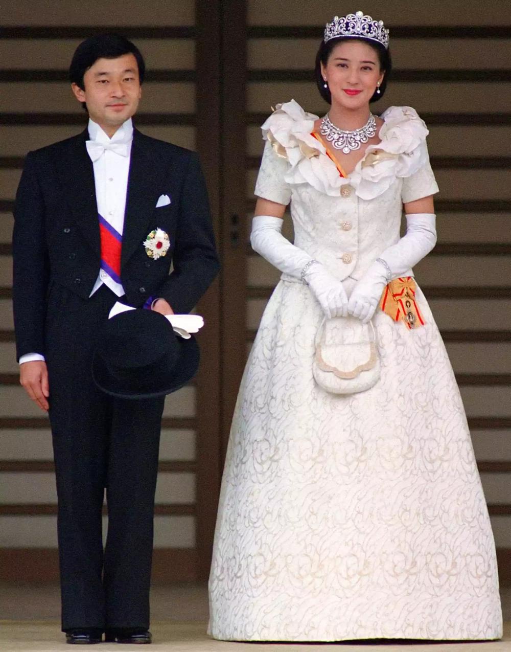据《华盛顿邮报》报道,1993 年小和田雅子皇后首先身着 12 层丝绸婚礼和服嫁给德仁亲王。但在仪式结束后,她换上了森英惠设计的白色礼服。这件礼服采用四分之三袖设计,饰有花卉印花,领口呈立体玫瑰花瓣造型。雅子还佩戴了白色歌剧手套和精致头饰。