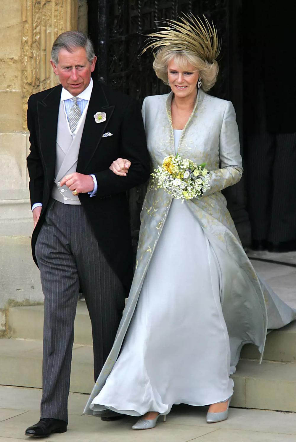 尽管查尔斯国王与王后卡米拉的第二次婚礼远比首次低调,新娘礼服亦然,但她在婚礼当天换上了第二套礼服。王后首先选择罗宾逊 · 瓦伦丁设计的白色真丝雪纺礼服,饰有扇贝形滚边,外搭同色系白色外套。在温莎市政厅举行的民事婚礼上,她搭配了菲利普 · 特雷西设计的奶油色华美礼帽。
