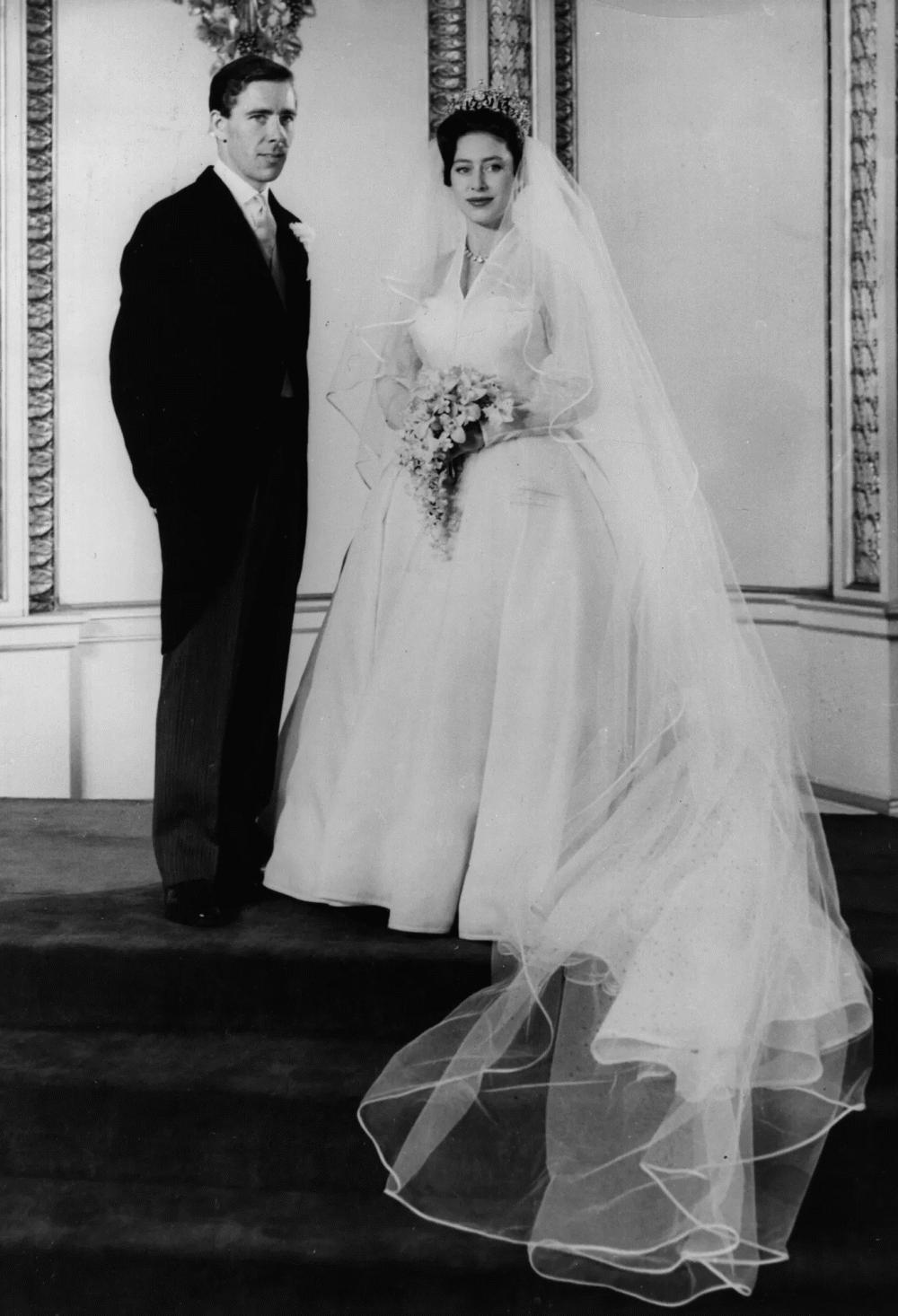 据《塔特勒》杂志报道,礼服设计理念极为纯粹:玛格丽特要求简约款式,以免压倒她 1 米 55 的身高。她搭配佩戴了更为精美的波尔蒂莫尔王冠。这顶原属弗洛伦斯 · 波尔蒂莫尔女爵的加拉德珠宝,于 1959 年拍卖会为新娘购得。“究竟是玛格丽特本人、其姐伊丽莎白女王还是其母支付了费用,至今尚无定论。”古董珠宝商兼学者玛娜兹 · 伊斯帕哈尼 · 巴托斯向《城镇与乡村》透露:“购得后玛格丽特迫不及待想佩戴它。”