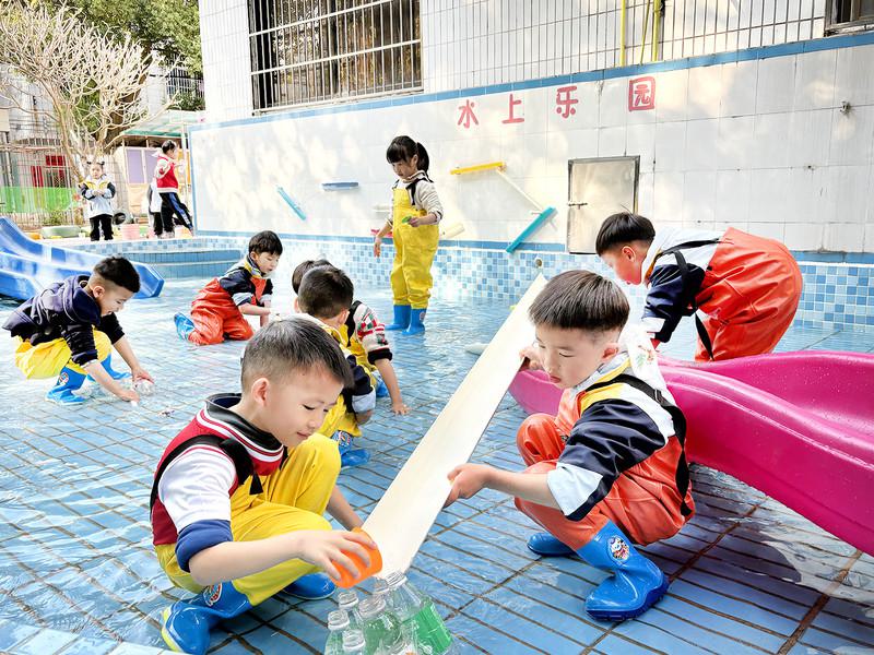 鼎湖区机关幼儿园开展自主游戏,大班孩子们正在水上乐园游玩。 西江日报记者 夏紫怡 摄