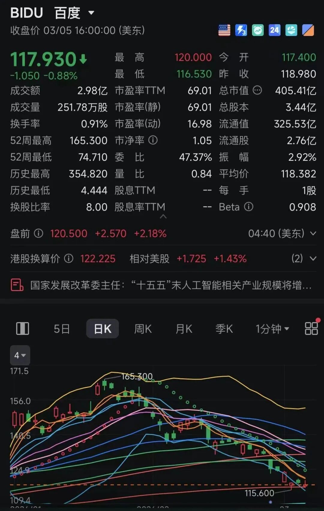 自打百度发布那份《2026年第四季度及全年业绩公告》,它的股价就跟吃了巴豆一样,在美、港两地拉出一条流畅的阴线。