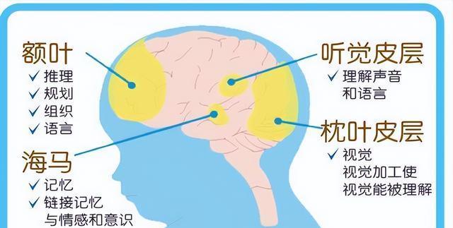 额叶区域是有推理、标准、组织、言语的功用;海马区有链接回想的效果,特别是数学的回想以及情感,还有咱们枕叶是在后脑勺,咱们后脑勺它就叫枕叶,它具有视觉加工和视觉被了解的效果!还有咱们右脑的是听觉皮层,具有声音和言语了解的效果!